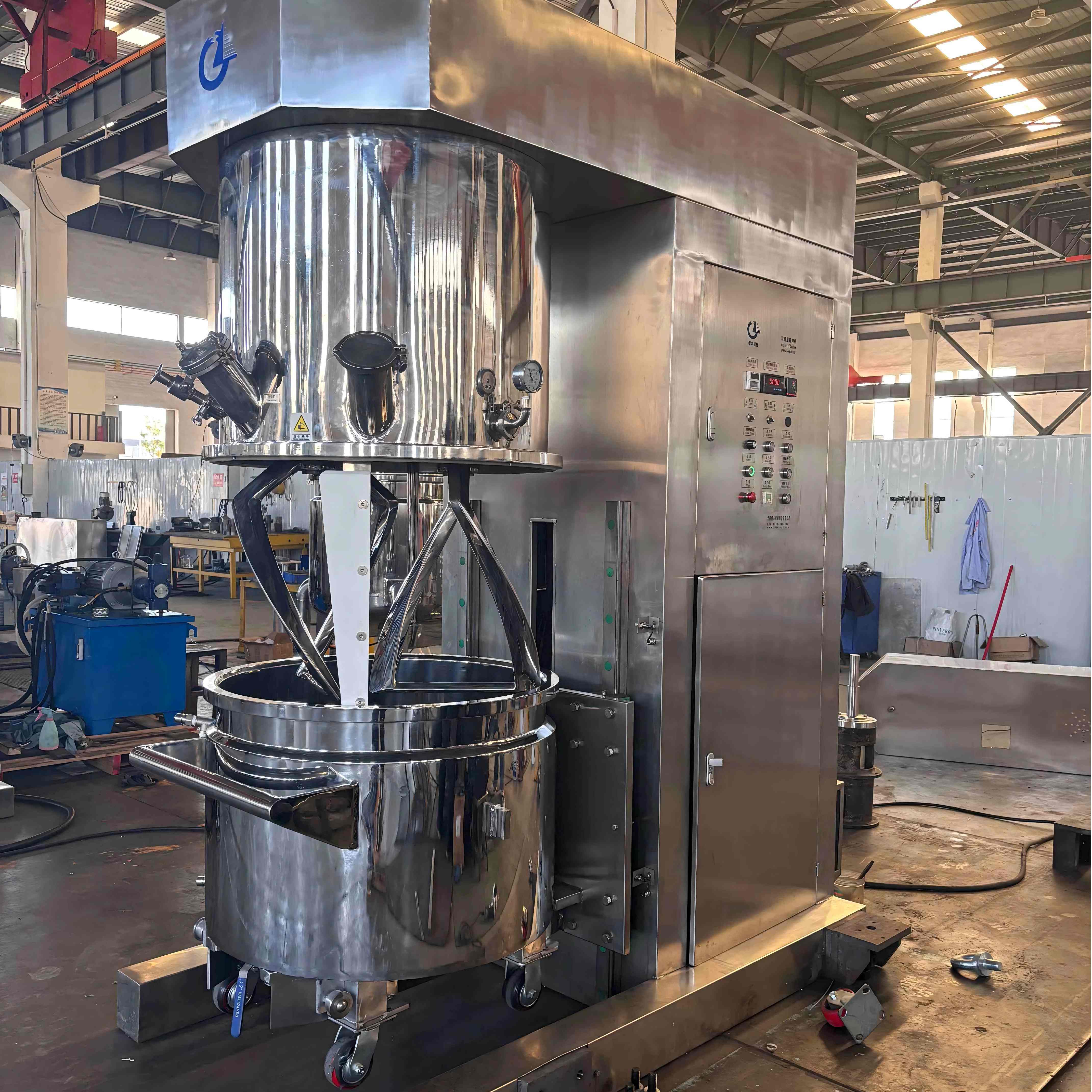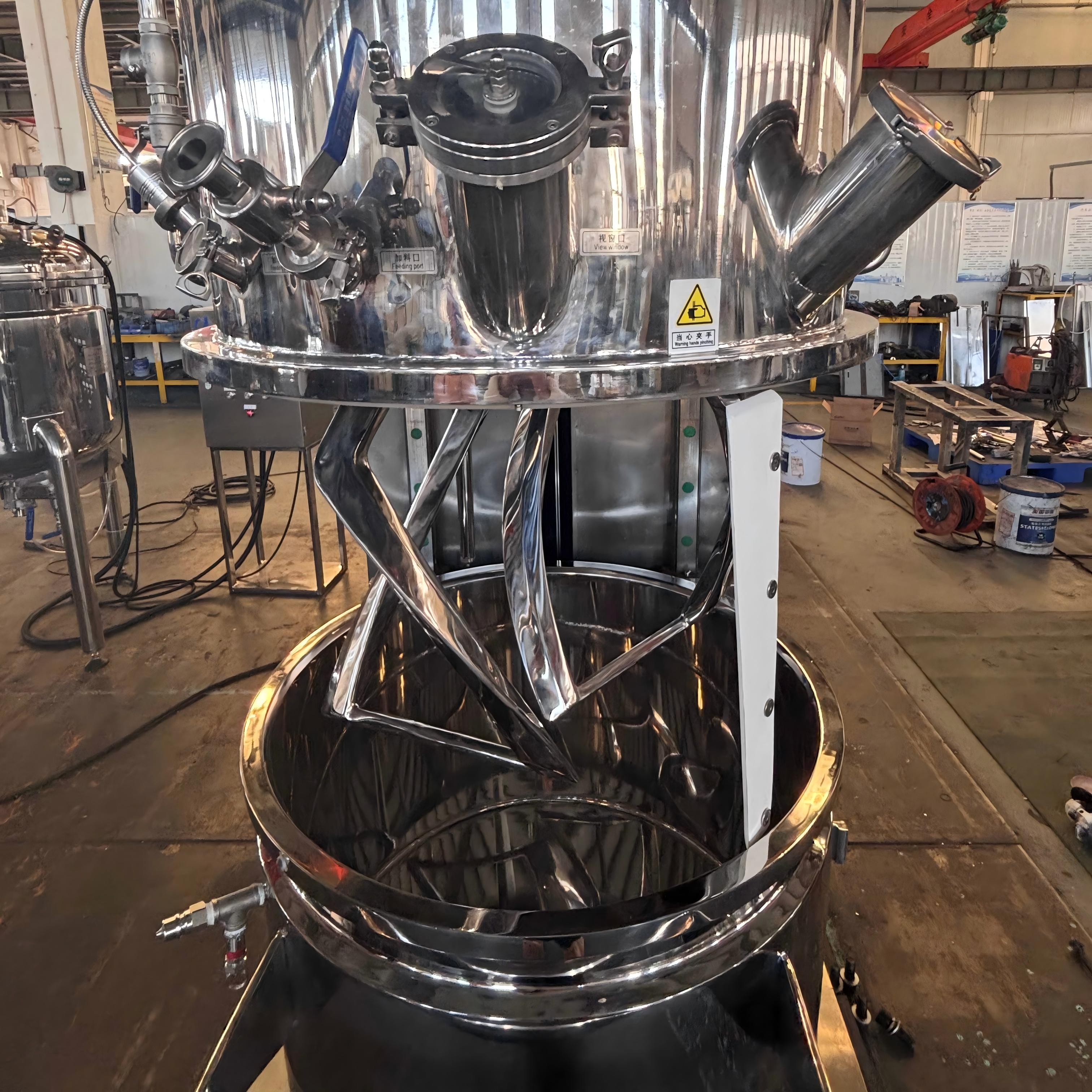 200 L สองดาว ที่มีตัวป้อนสื่อมวลชนเป็นอุปกรณ์ผสมประสิทธิภาพสูง ที่ถูกปรับ แต่งสำหรับวัสดุหนืดในการเคลือบเครื่องสำอาง และอุตสาหกรรมเคมี ระบบคู่ดาวเคราะห์ของมันประสบความสำเร็จในการผสมเครื่องแบบ 360 °โดยไม่ต้องโซนตาย ตัวป้อนสื่อแบบรวมช่วยให้ไม่มีฝุ่นโหลดอัตโนมัติตัดแรงงาน และการปนเปื้อน ผลิตจากสแตนเลสสีเงินสดใสให้ความมั่นใจในความทนทานทำความสะอาดง่าย และสุขอนามัยเหมาะสำหรับการผลิตแบทช์ ที่มีประสิทธิภาพความแม่นยำ