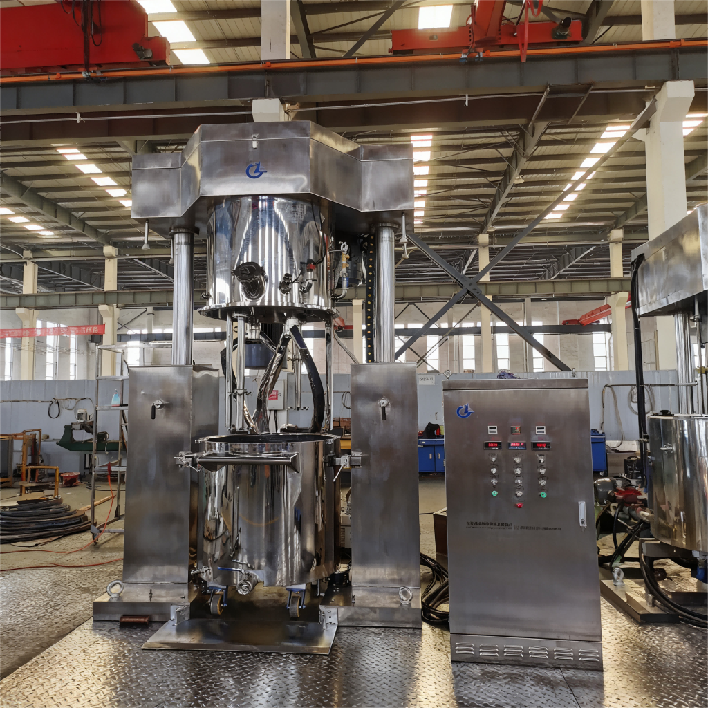 การผสม ที่ยอดเยี่ยมสำหรับความหนืดสูงวัสดุ: มันถูกออกแบบมาเป็นพิเศษเพื่อจัดการกับสารมีความหนืดสูง (โดยปกติแล้วสูงถึงหลายแสนถึงล้านเซนติซิล) เช่น การยึดเกาะภูเขาน้ำมันเจล และความเข้มข้นสูง แรงเฉือน ที่แข็งแกร่ง และการนวด ที่เกิดจากการเคลื่อนไหวคู่ช่วยให้การผสมอย่างละเอียดของวัสดุหนา